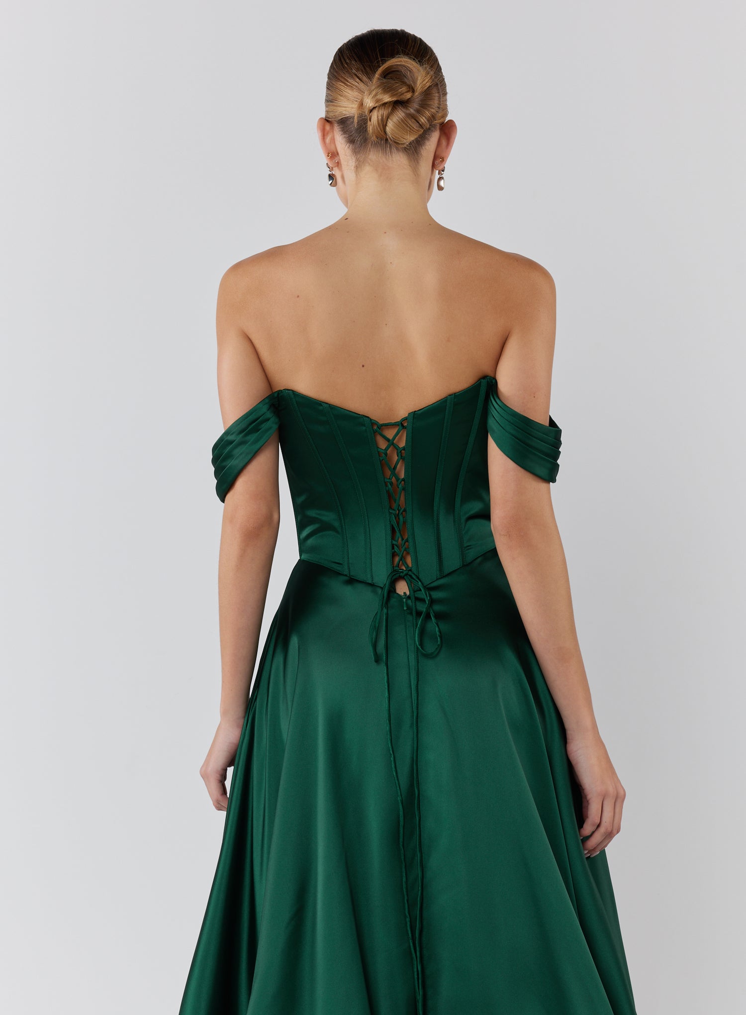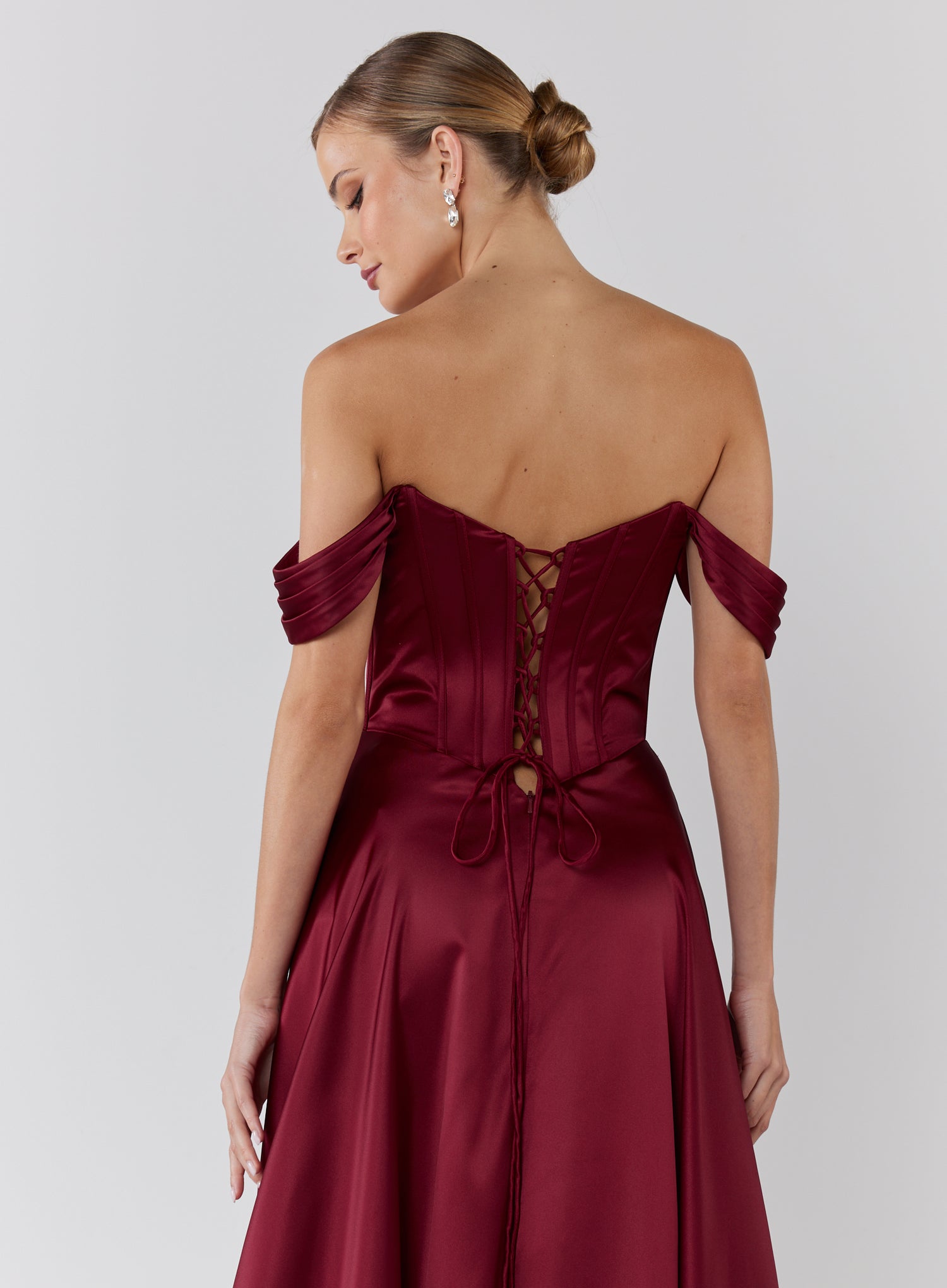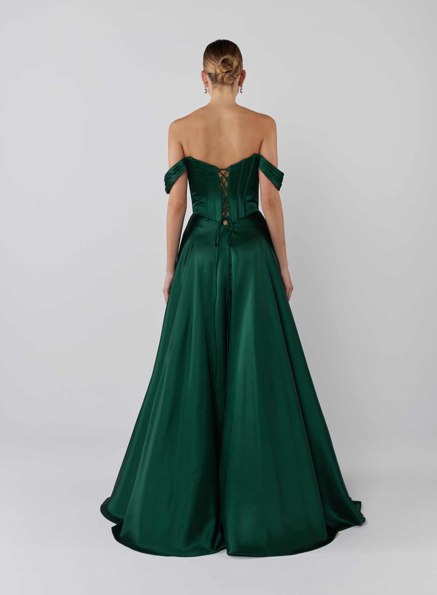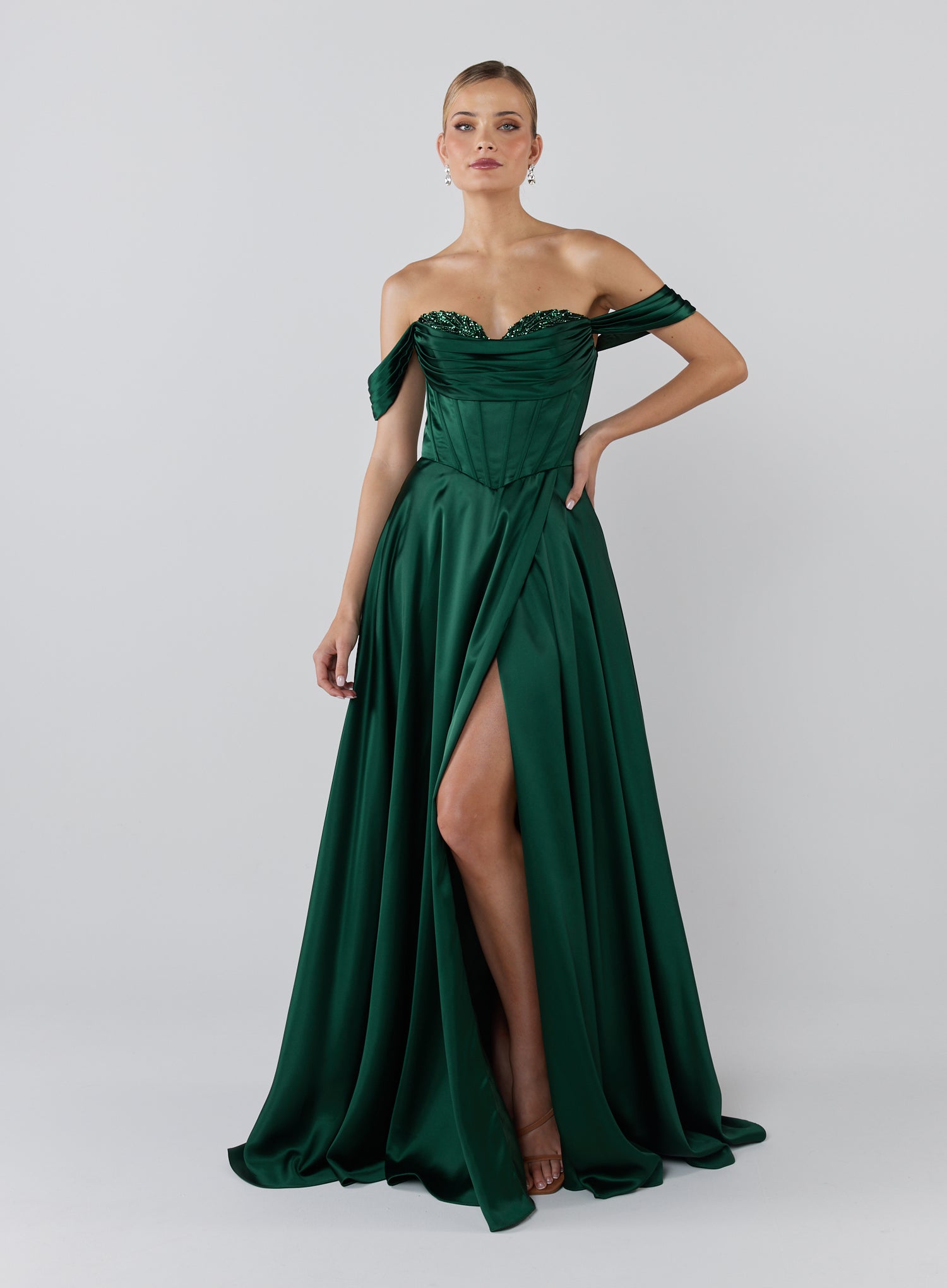 The Cosette Formal Dress epitomizes modern romance with its graceful A-line silhouette and luxurious satin fabric. Designed for the discerning bride, this gown features an elegant sweetheart neckline with peek-a-boo beaded bust cups and exposed boning for flattering structure. Off-the-shoulder pleated straps drape softly across the shoulders, while a strategic front split adds contemporary flair and practical movement. The adjustable lace-up back closure ensures a perfect fit, complemented by an invisible zipper for a seamless look. Timeless yet refreshingly modern, the Cosette delivers the sophisticated elegance every bride deserves.