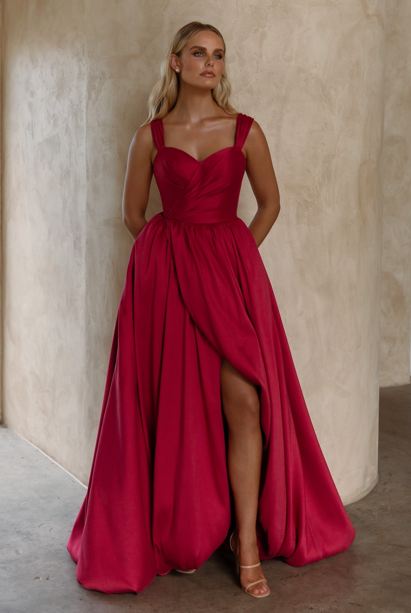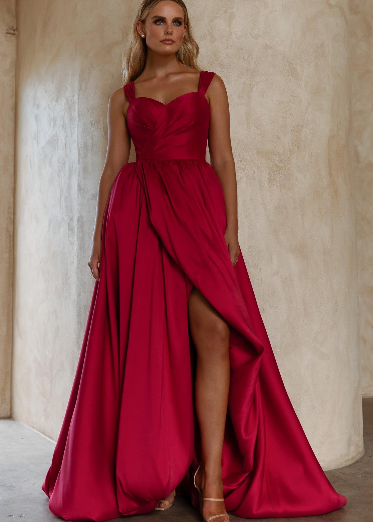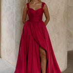 The Lyla Formal Dress combines classic elegance with modern flair, crafted from luxurious brushed Mikado for structure and a gentle sheen. Its sweetheart neckline and wide straps flatter your silhouette while offering comfortable support. The full A-line skirt features a striking front split that adds dynamic movement and contemporary charm. With a sleek zip closure at the back, Lyla effortlessly blends romance and sophistication, making it an exquisite choice for your most memorable occasions.