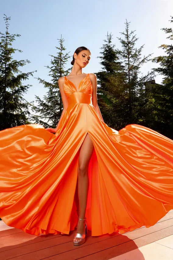 Elevate your formal wear with the Nicoletta NC2052 V-neck A-line dress. Made with glossy stretch jersey, this dress offers a flattering silhouette and comfortable fit. Perfect for any formal occasion, this dress exudes elegance and sophistication. Stand out in style with this stunning evening dress.