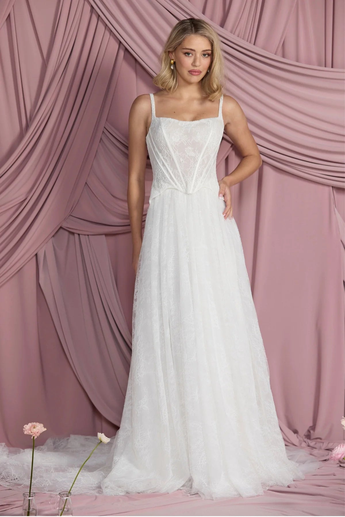 The Verona Skirt embodies romantic elegance with its lightweight mesh lace adorned in delicate floral garden patterns. The graceful A-line silhouette flows effortlessly from waist to hem, offering both movement and timeless beauty. Designed to pair seamlessly with our bodice collection, this skirt delivers refined detail without sacrificing comfort. Perfect for the bride seeking nature-inspired sophistication with understated charm. Exclusively available at Archela Bridal in Western Australia.